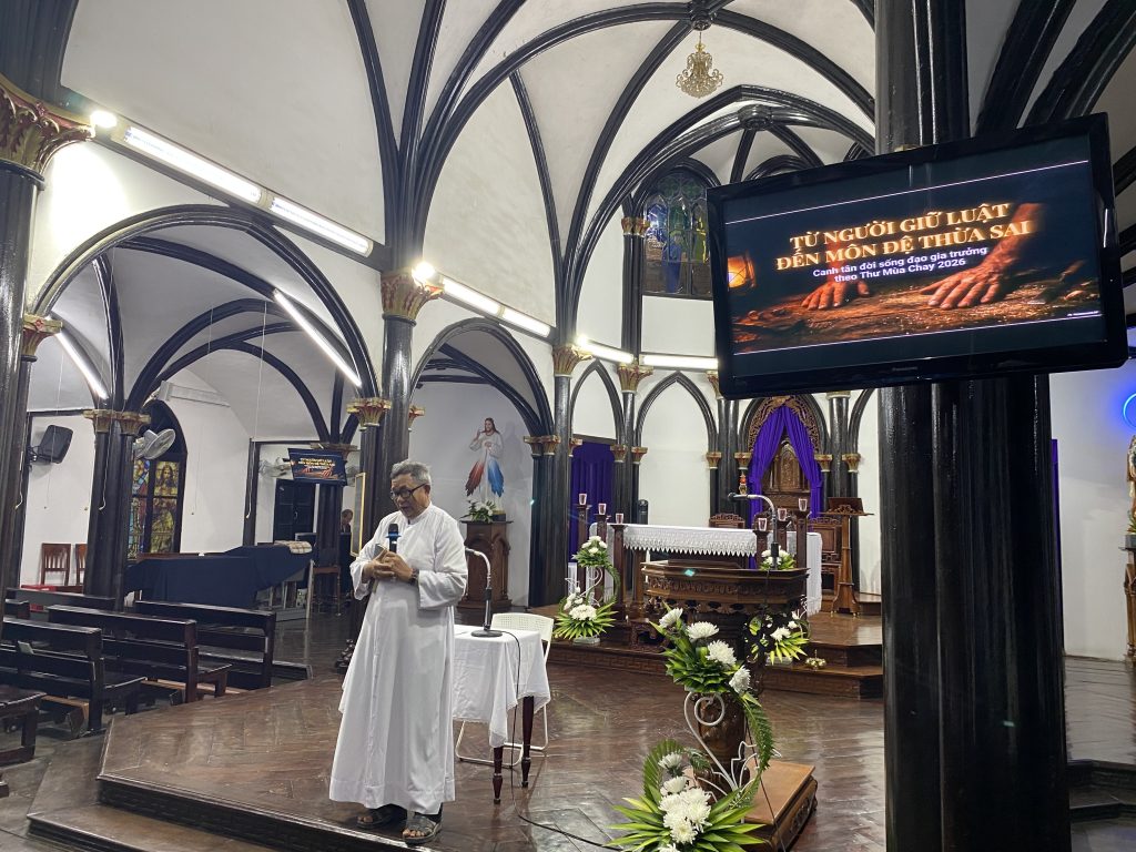Trong bầu khí linh thiêng của Mùa Chay và chuẩn bị tâm hồn mừng lễ Thánh Giuse bổn mạng, các người cha trong giáo xứ Tân Hương đã có buổi tĩnh tâm vào lúc 19g15’, ngày 18/03/2026 tại nhà thờ giáo xứ. Cha Antôn Phan Tự Cường, OP đã hướng dẫn tĩnh tâm với chủ đề: “Từ người giữ luật đến môn đệ thừa sai – Canh tân đời sống theo gương Thánh Cả Giuse”. Qua đó, ngài đã giúp quý hiền phụ nhìn lại vai trò “trụ cột” của mình trong gia đình và giáo xứ. Dựa trên Thư Mùa Chay của Đức Cha Aloisiô – Giám mục giáo phận, Cha giảng phòng mời gọi mỗi người cha thoát khỏi lối sống đạo “tối thiểu” để trở thành những môn đệ thừa sai đích thực.
