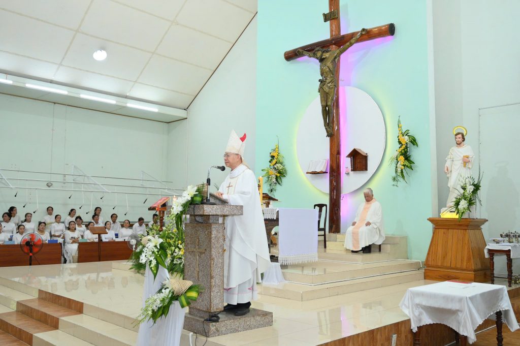 Chia sẻ Lời Chúa với cộng đoàn, Đức Cha nhấn mạnh cuộc sống của chúng ta ở trần gian là một cuộc hành hương để tiến về quê trời là quê hương đích thật. Hành trình lên đường này gặp rất nhiều khó khăn thử thách như chúng ta đang chứng kiến trên thế giới cũng như trong cuộc sống của mỗi người. Năm Thánh là một thời điểm hồng ân đem lại niềm an ủi, sự chữa lành, sự giải thoát, ơn tha thứ của Thiên Chúa nếu chúng ta thành tâm sám hối và biết qui hướng về Chúa Giêsu là niềm hy vọng, là “mỏ neo” bảo đảm chắc chắn cho chúng ta về phần rỗi, bởi vì Chúa Giêsu là Đấng cứu độ, Ngài đến đem lại ơn cứu độ dồi dào cho chúng ta.