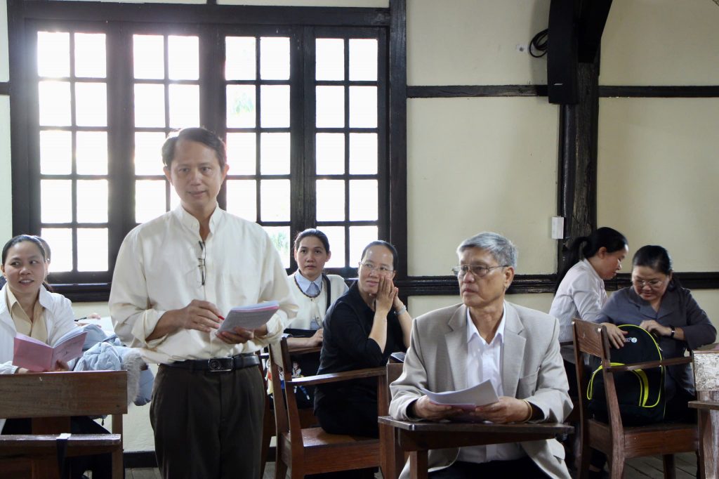 Đúng 09h00, bầu khí của hội trường nhà mục vụ đã rộn rã tiếng cười, tiếng hát và những tràng pháo tay nồng nhiệt. Ngày họp mặt khởi đầu bằng giờ cầu nguyện chung, xin ơn thánh hóa và dâng lên Chúa những thao thức, niềm vui cùng những thách đố trong sứ mạng “trồng người”. Sau đó, Cha Phêrô Ngô Đức Trinh – Trưởng ban Giáo dục của Giáo Phận đã giới thiệu các thành viên trong Ban Điều hành mới và thông qua kế hoạch hoạt động. Trong niên khóa này, hưởng ứng sự chỉ dẫn của Hội đồng Giám mục Việt Nam, mỗi thầy cô giáo được mời gọi trở nên “Ánh sáng thế gian” (x. Mt 5,14). Cụ thể, mỗi thầy cô Công Giáo cùng nhau gắn kết yêu thương, gia tăng lòng nhiệt thành và hăng say phục vụ tha nhân.