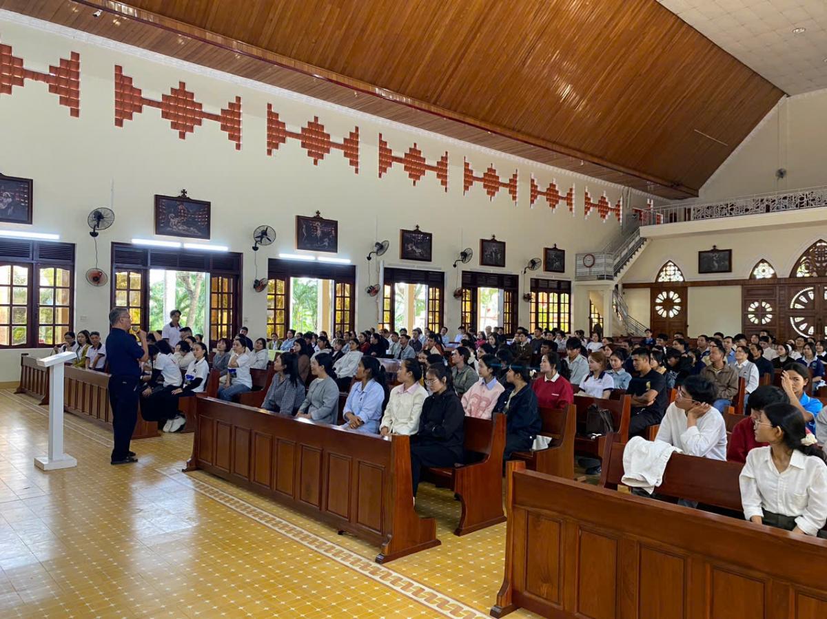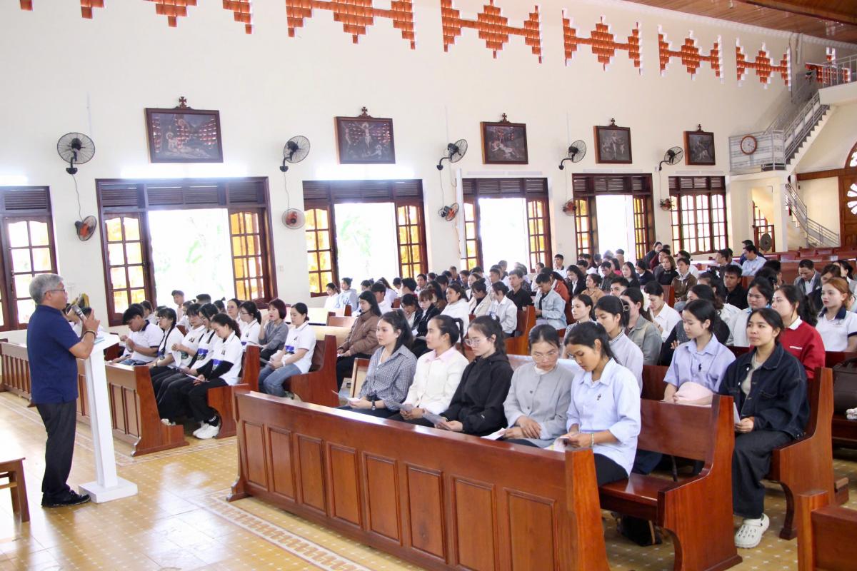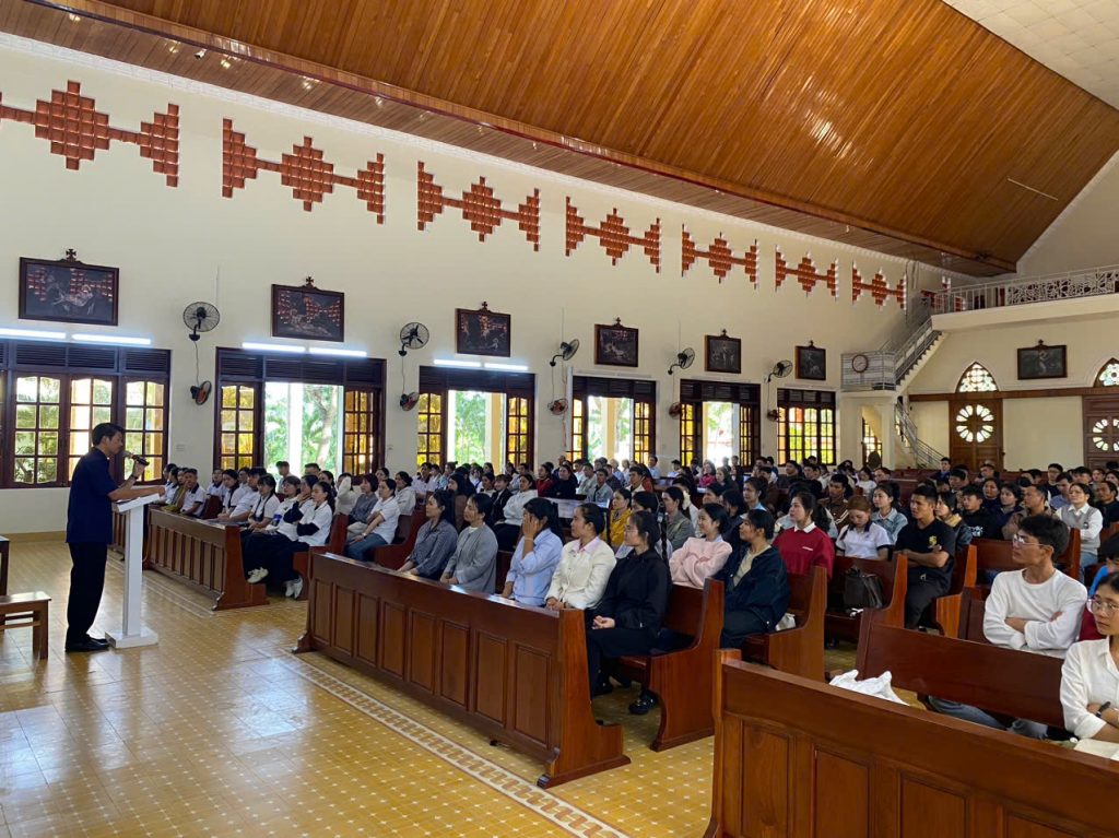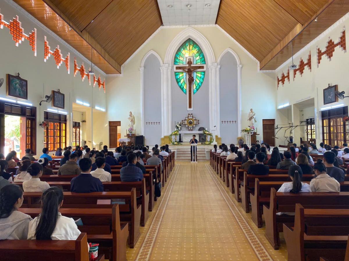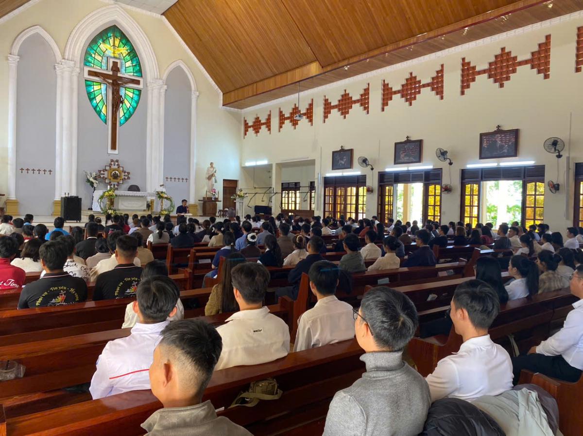 Sau giờ cơm trưa và nghỉ ngơi, vào lúc 13g00, các bạn trẻ bắt đầu sinh hoạt đầu giờ, sau đó lắng nghe quý Cha chia sẻ về Chương trình Mục vụ năm 2026 của Giáo phận Kon Tum liên quan đến giới trẻ: