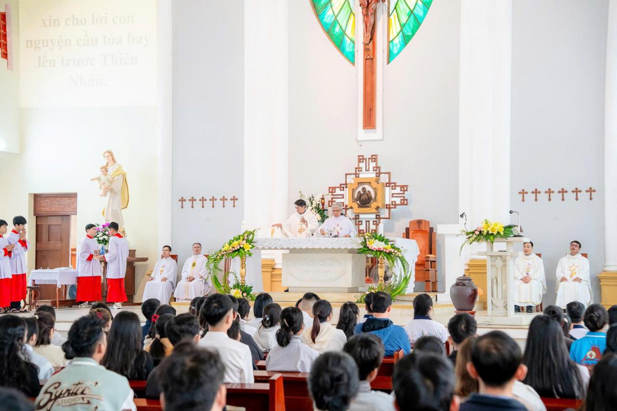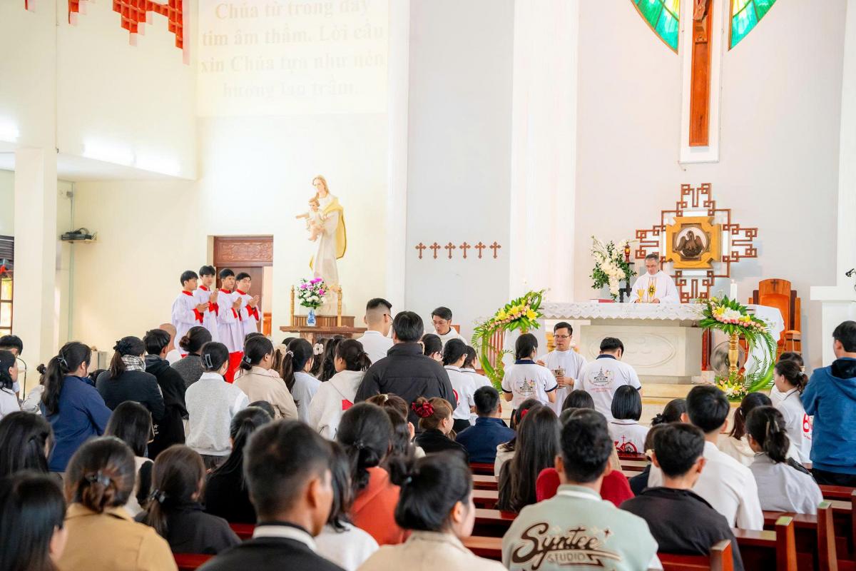 Trước khi bước vào chương trình sinh hoạt chính thức, các bạn trẻ đã dành những giờ phút thiêng liêng của ngày cuối năm để hiệp dâng Thánh lễ tạ ơn Chúa và cầu nguyện cho giới trẻ trong Giáo phận. Thánh lễ diễn ra lúc 9g30, do Cha Đaminh Saviô Phan Đại Phước chủ tế, cùng sự hiện diện của quý Cha trong Ban điều hành Ủy ban và một số quý Cha đồng tế.