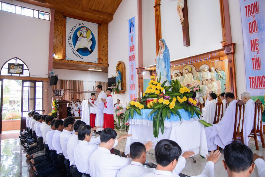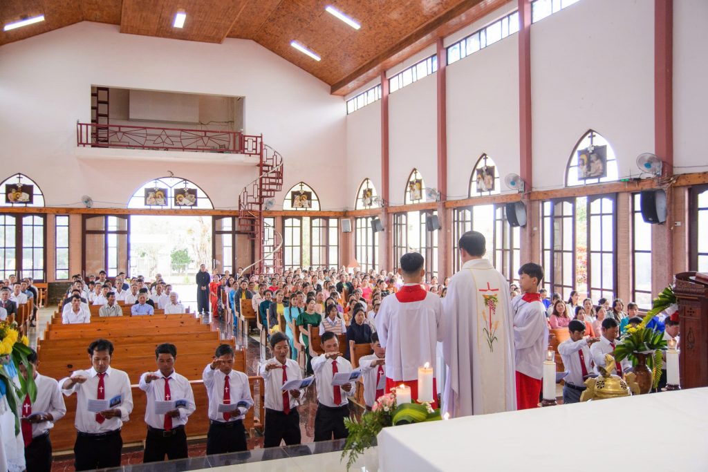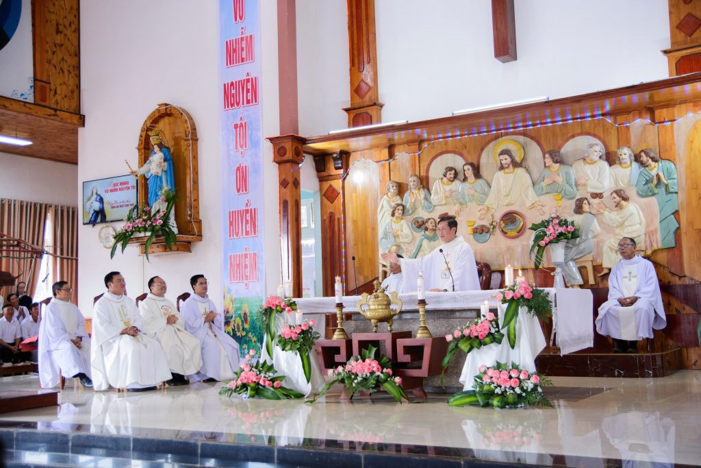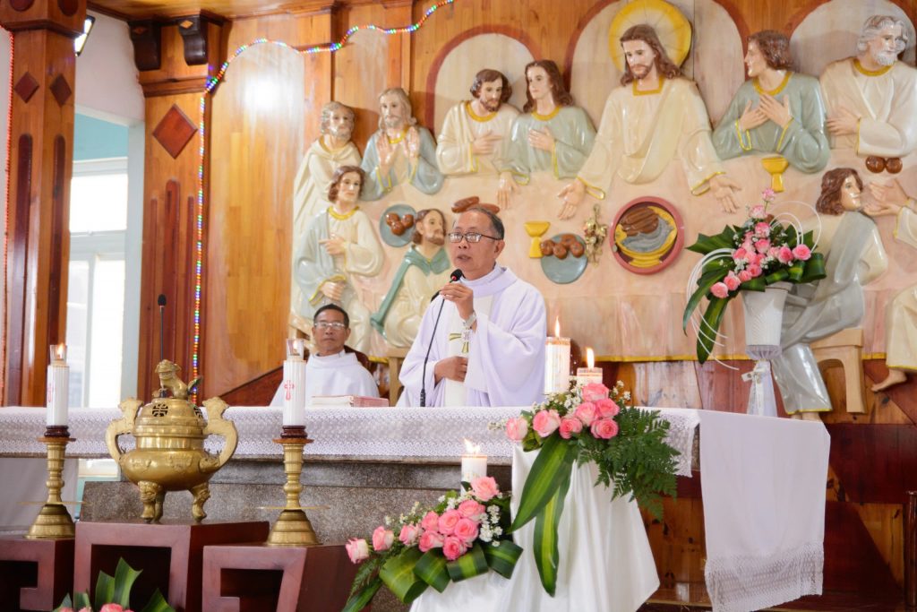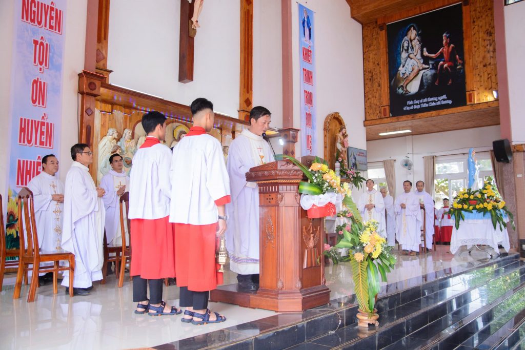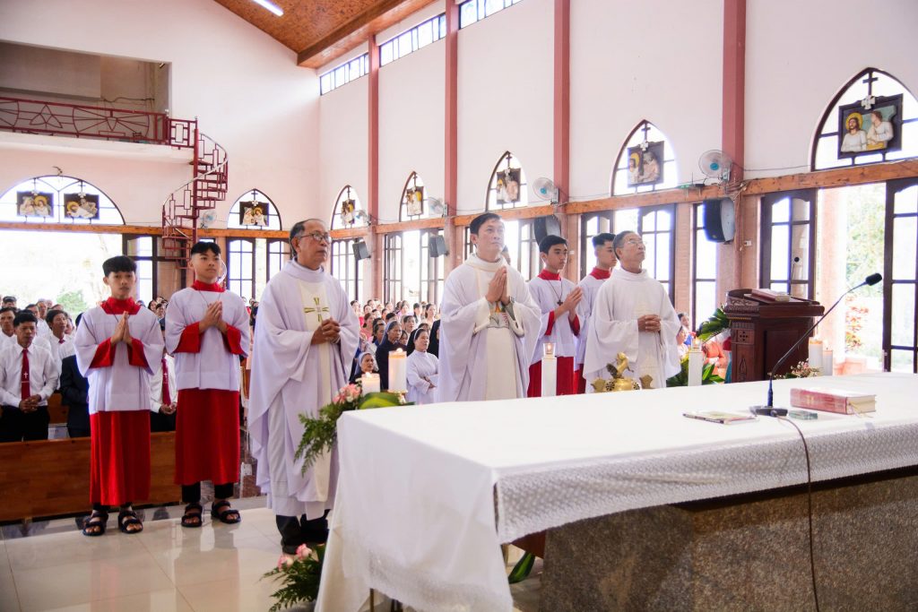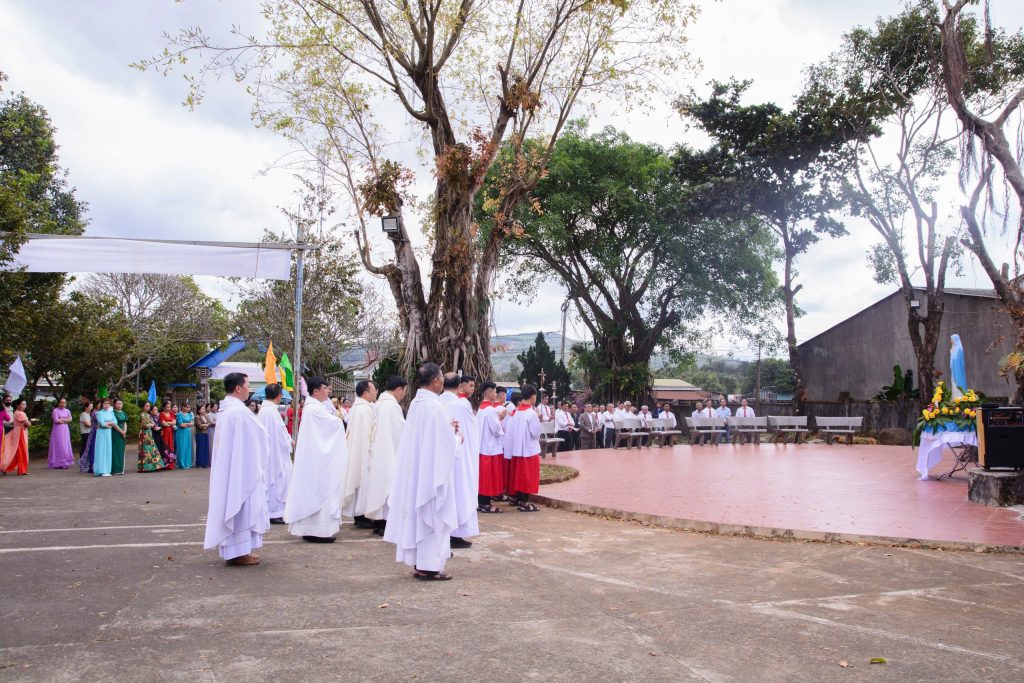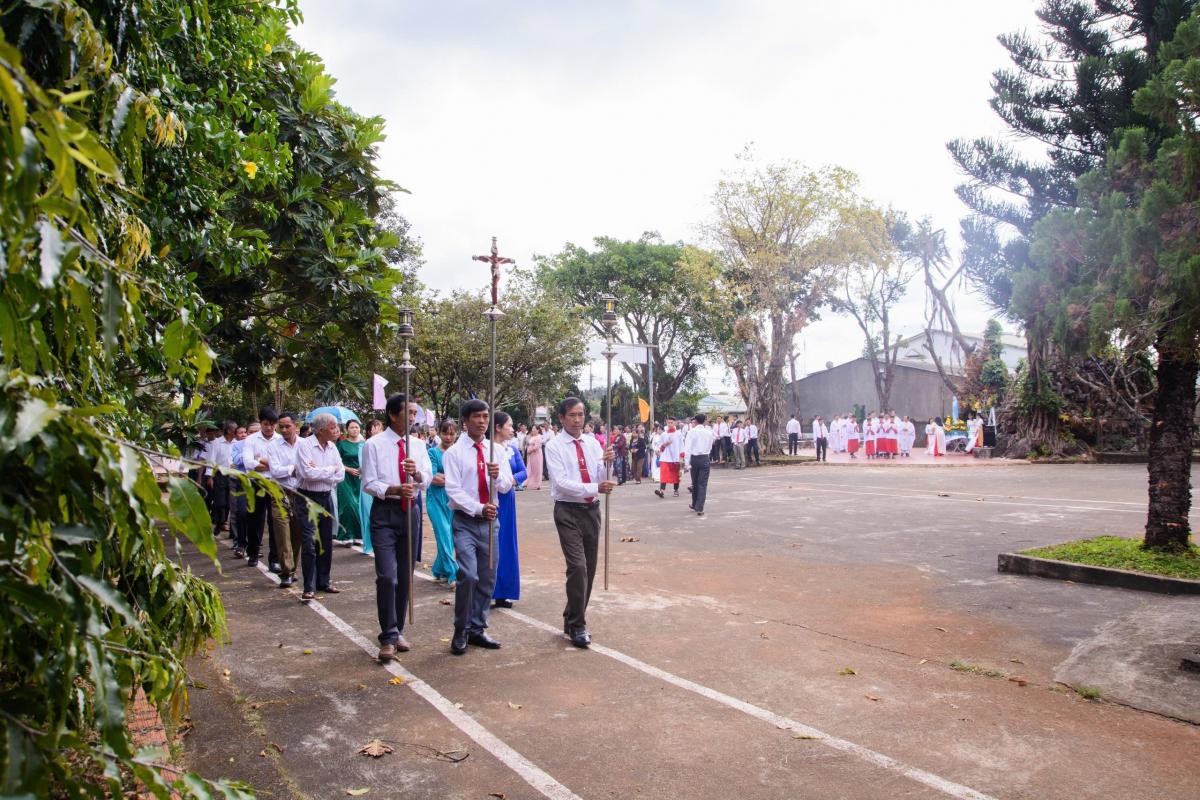 Thánh lễ được cử hành vào lúc 9 giờ 30 do Cha chính xứ Gioakim Phạm Thái Tuyên, SDB chủ tế. Đồng tế có Cha Bề trên Giuse Nguyễn Đình Phúc và quý Cha thuộc cộng đoàn Don Boscô Chư Prông cũng như một số quý Cha trong giáo hạt.