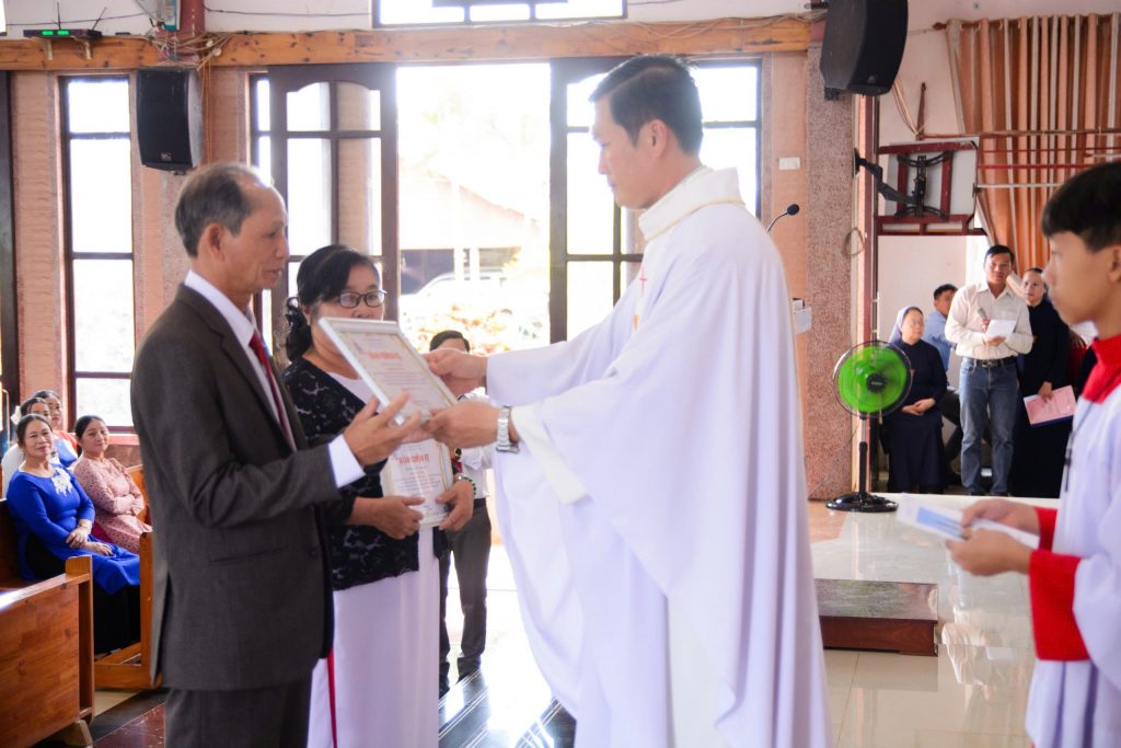 Vào cuối thánh lễ, cha sở thay mặt Đức Giám mục giáo phận trao bằng Tưởng Lệ cho các vị chức việc đã mãn nhiệm, và trao Ủy Nhiệm Thư cho các thành viên mới của Hội đồng Mục vụ giáo xứ Thanh Bình và Giáo Họ Tân Lạc.