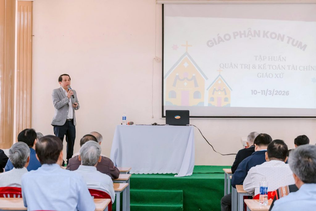 Trong hai ngày 10 và 11/03/2026 vừa qua, Giáo phận Kon Tum đã tổ chức khóa tập huấn “Quản trị tài chính Giáo xứ” tại hai vùng Kon Tum và Gia Lai. Đây là bước chuẩn bị quan trọng nhằm tiến tới việc thành lập các Hội đồng Kinh tế (HĐKT) Giáo xứ theo quy định của Giáo luật và nhu cầu mục vụ thực tế.
