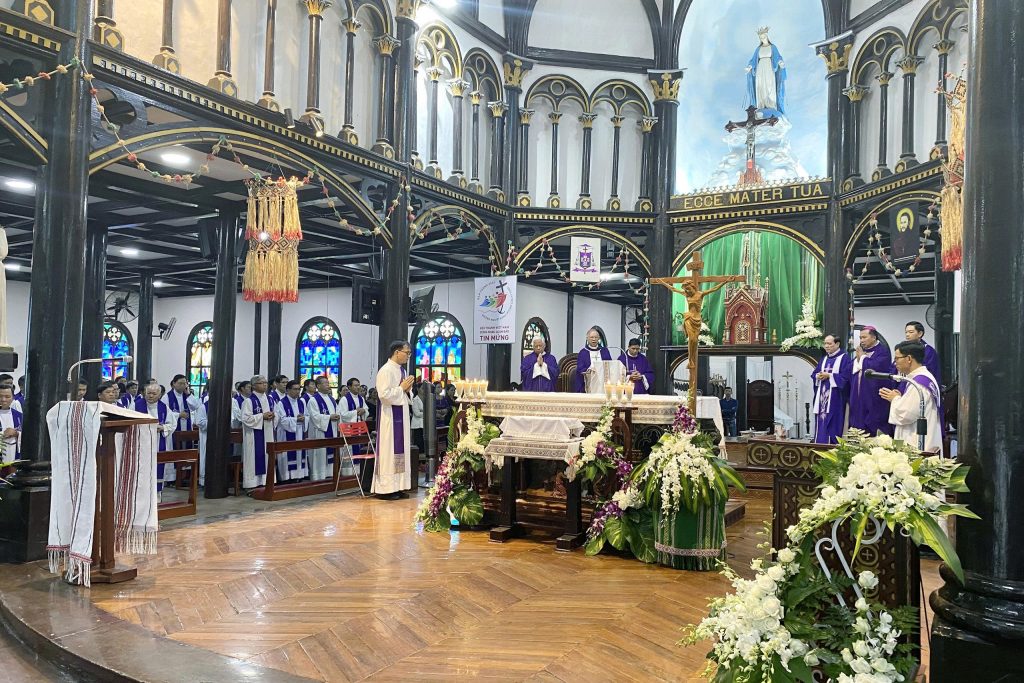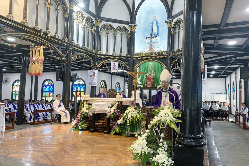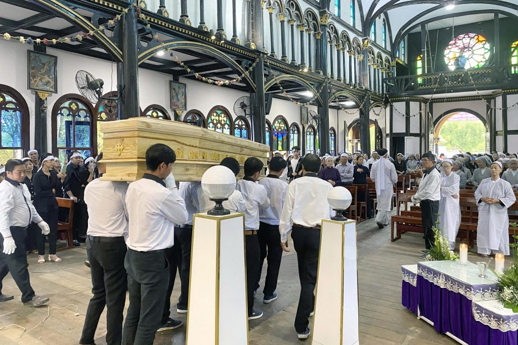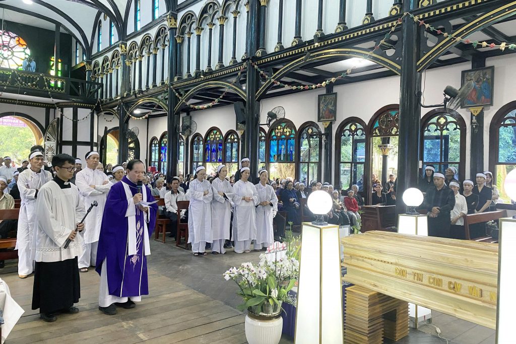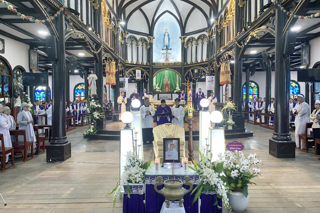 Thánh lễ an táng do Đức Cha Aloisiô Nguyễn Hùng Vị, Giám mục Giáo phận Kon Tum chủ sự. Cùng đồng tế có Đức Cha Gioan Baotixita Nguyễn Huy Bắc, Giám mục Giáo phận Ban Mê Thuột, Cha Tổng đại diện, quý Cha Đại diện Giám mục, Cha Phó Giám đốc Đại Chủng viện Xuân Bích Huế, quý Cha Quản hạt, quý Cha Bề trên các Hội Dòng cùng đông đảo linh mục trong và ngoài giáo phận. Hiệp thông trong Thánh lễ còn có quý tu sĩ nam nữ, thân nhân, linh tông huyết tộc của Cha cố, cùng đông đảo cộng đoàn tín hữu.