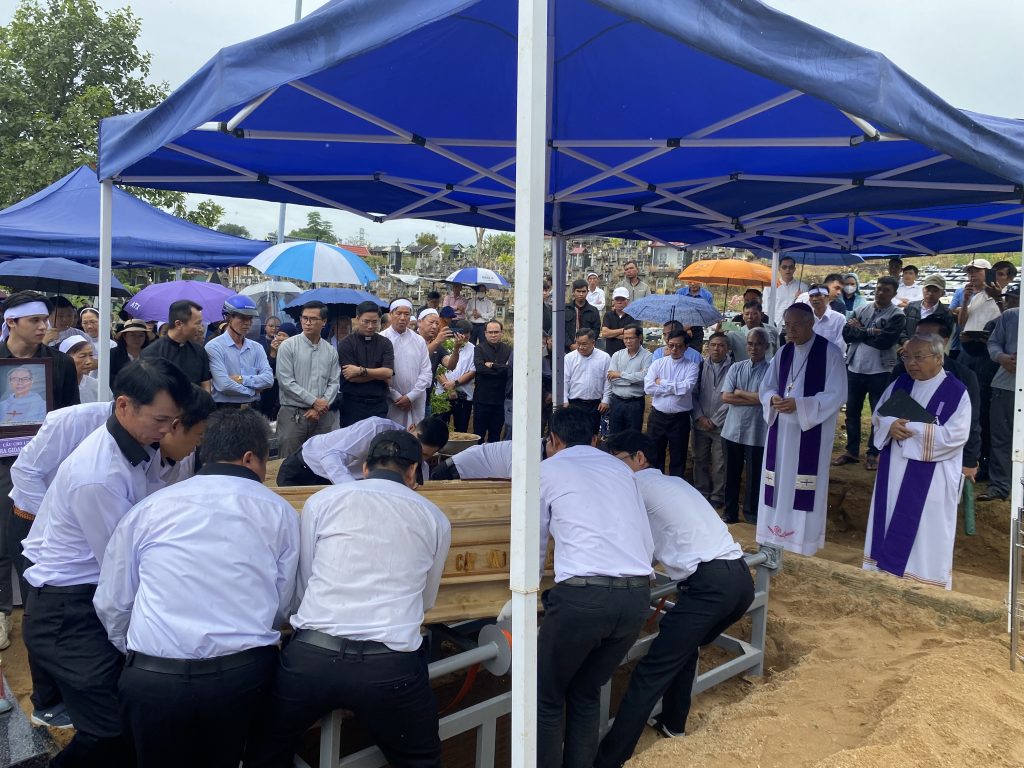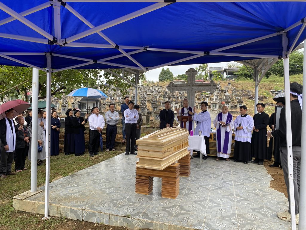 Sau phép lành cuối lễ, linh cữu Cha cố Gioan Baotixita được di chuyển đến nghĩa trang linh mục – tu sĩ Giáo phận Kon Tum. Tại đây, Đức Cha Aloisiô chủ sự nghi thức tại phần mộ, trong lời kinh nguyện tha thiết và niềm hy vọng phục sinh.