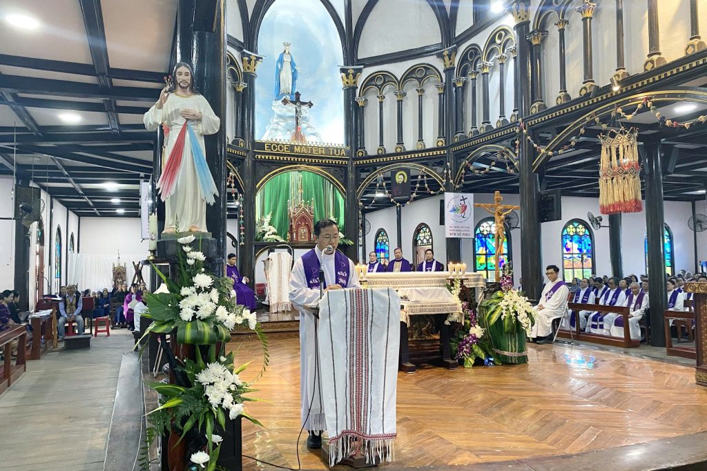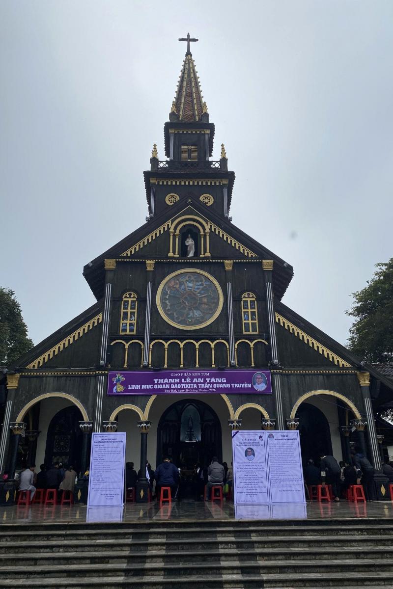 Sáng thứ Hai, ngày 20 tháng 10 năm 2025, bầu trời Kon Tum phủ mây và cơn mưa phùn se lạnh, cộng đoàn Dân Chúa quy tụ về Nhà thờ Chính Tòa Kon Tum để tiễn đưa Cha cố Gioan Baotixita Trần Quang Truyền về an nghỉ trong lòng đất mẹ, trong niềm thương nhớ và tin yêu phó thác.
