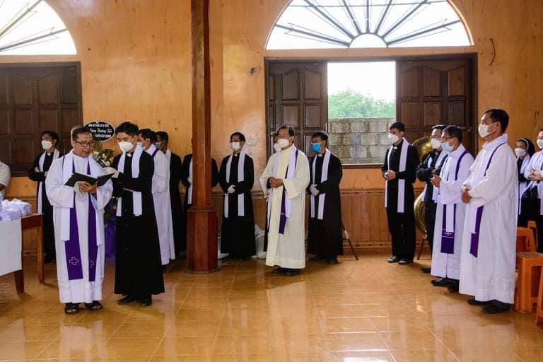Lúc 17h00, Cha Đaminh Đinh Quang Vinh, quản hạt Pleiku, đã cử hành nghi thức tẩm liệm và phát tang cho Cha cố Tôma.