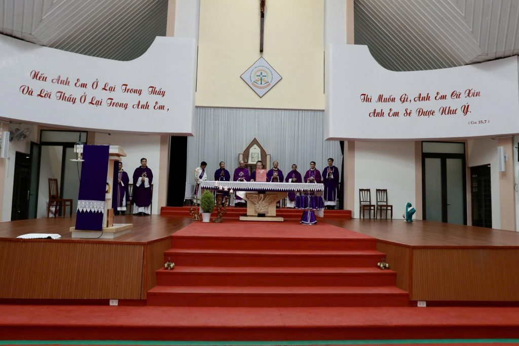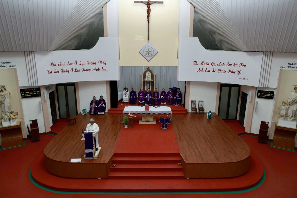 Mở đầu thánh lễ, cha Bênêđictô Nguyễn Văn Bình nói: Thiên Chúa đã gọi cha Cố về cách đây 4 năm, qua cuộc đời của ngài mà chúng ta thêm xác tín rằng quê hương đích thực của chúng ta ở trên trời. Chúng ta bắt gặp nơi ngài, một con người sống khiêm tốn, nhẹ nhàng, luôn bao dung tha thứ. “Tạ ơn Chúa, kệ đi con?”– đó là câu nói mà ta hay nghe ngài nói khi gặp ngài. Ngài quả là một vị thừa sai đích thực của Chúa Kitô. Như ngài, chúng ta được mời gọi trở nên một môn đệ thừa sai, sống cuộc đời tin yêu, phụng sự Chúa và phụng sự anh chị em cách mạnh mẽ trong đời sống của mình.
