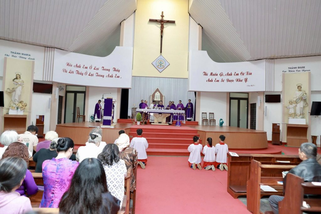 Trong phần bài giảng, cha Giuse Đỗ Cao Bằng chia sẻ với cộng đoàn về đoạn Lời Chúa Mt 18,21-35: “Nếu mỗi người trong anh em không hết lòng tha thứ cho anh em mình, thì Chúa Cha cũng không tha thứ cho anh em.” Lòng tha thứ chính là thách đố lớn nhất của chúng ta. Trong Mùa Chay Thánh này, mỗi người được mời gọi đến với Thánh Thể Chúa nhiều hơn, đến với bí tích hòa giải để được giao hòa và cảm nhận sâu hơn lòng thương xót của Chúa. Nhờ đó, mỗi người ra đi thể hiện đức tin của mình bằng hành động cụ thể là sống bao dung hơn và thể hiện sự tha thứ với hết thảy mọi người.