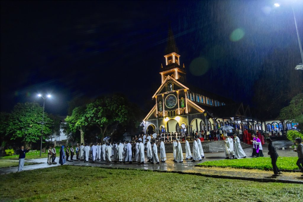 Thánh lễ bắt đầu vào lúc 5g30’ tại Nhà thờ Chính Tòa Kon Tum, với sự hiện diện của Đức Cha Aloisiô, chủ tế; Cha Tổng đại diện, quý Cha Đại diện Giám mục, quý Cha Hạt trưởng, quý Cha Bề trên, quý Cha cố và quý Cha đồng tế, cùng đông đảo quý Tu sĩ nam nữ và các thành phần giáo dân trong Giáo phận hiệp thông tham dự thánh lễ.