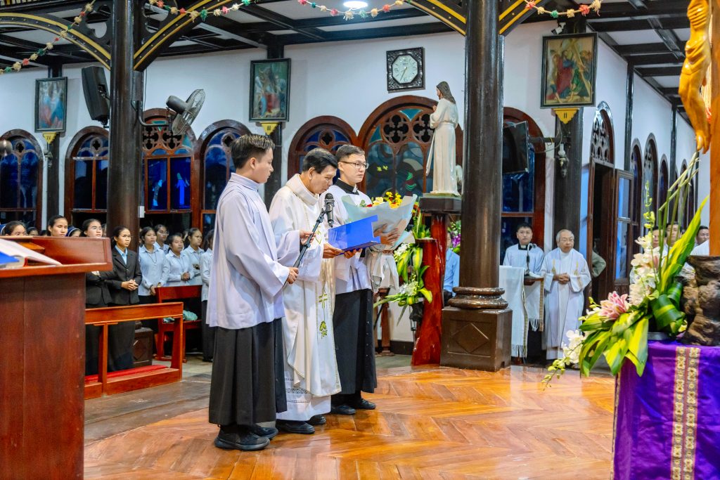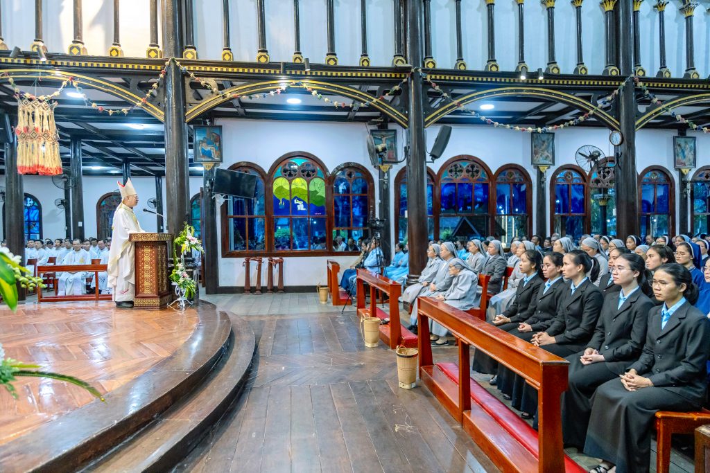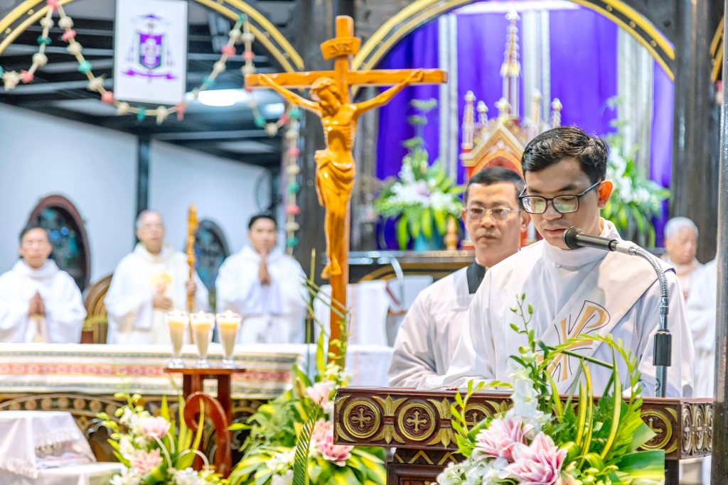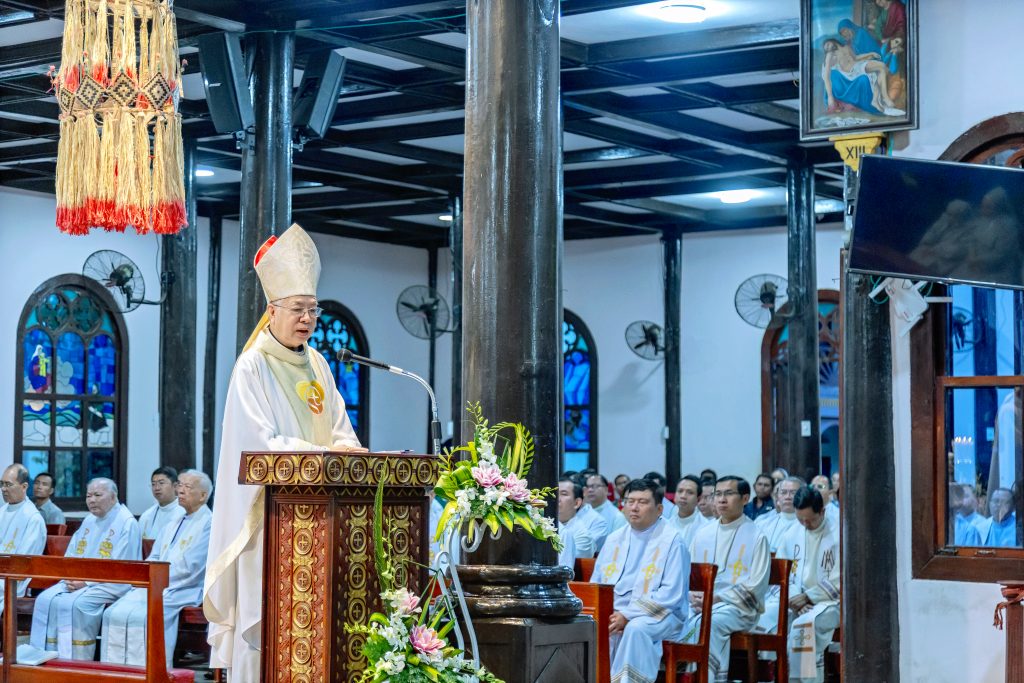 Cuối cùng, Đức Cha nhắc nhở về lời của thánh Phaolô trong thư gửi tín hữu Côrintô: “Khốn cho tôi nếu tôi không rao giảng Tin Mừng”. Ngài nhắn nhủ mỗi người chúng ta hãy nhìn lại bản thân và dám làm chứng cho Chúa, không phải trong những việc to tát nhưng trong những việc bình thường hàng ngày. Đức Cha cũng kêu gọi cầu nguyện cho Chủng viện Thừa sai Kon Tum, xin Chúa ban cho có nhiều người trẻ biết đáp lại tiếng Chúa gọi, cầu nguyện cho Quý Cha, để các ngài tiếp tục công việc loan báo Tin Mừng Chúa trao.