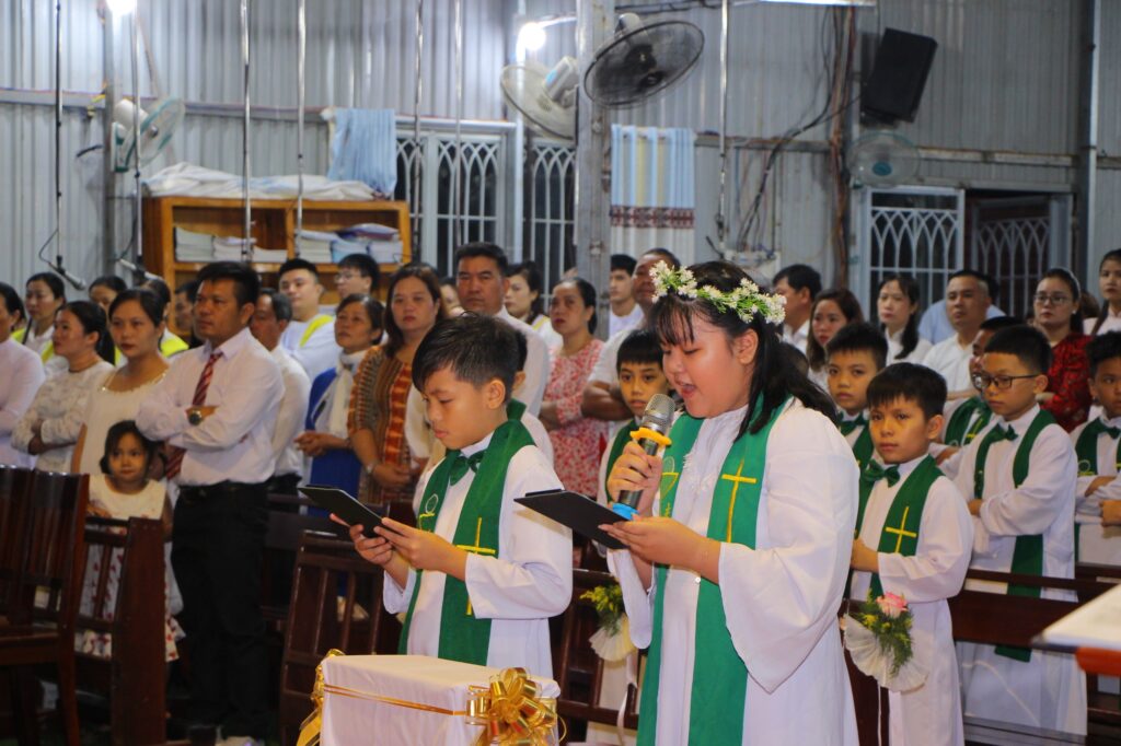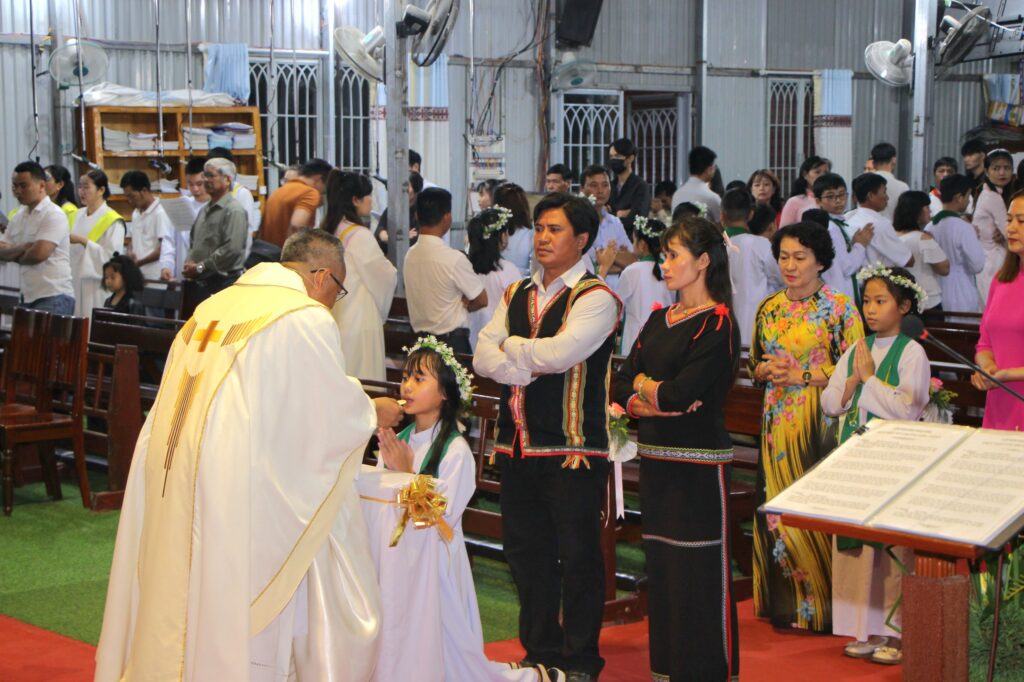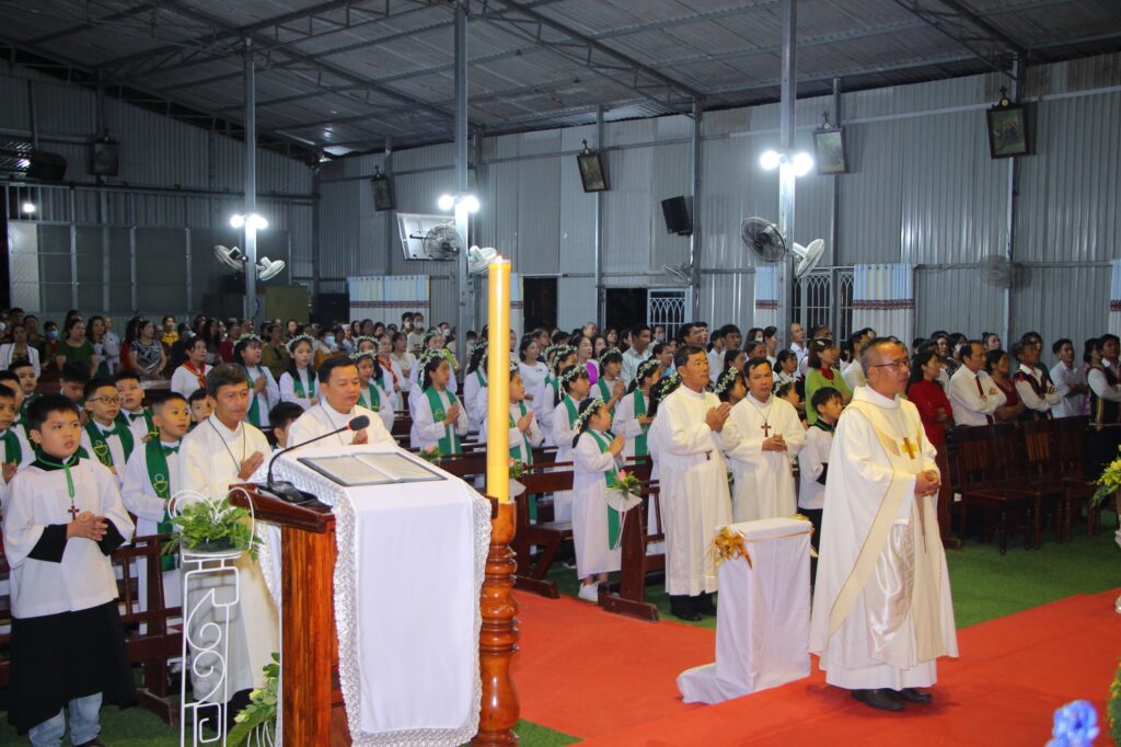 Thánh lễ dù diễn ra trong ngôi nhà thờ tạm, trong cơn mưa lâm râm và cái se lạnh của tiết trời tháng 7 trên đất Tây Nguyên, nhưng trong lòng mọi người vẫn cảm thấy ấm áp lạ thường. Một sự nồng ấm trong tình Chúa và tình người thắp lên niềm tin yêu hy vọng về một ngôi thánh đường mới của giáo xứ sẽ sớm hoàn thành, để mọi thành phần trong giáo xứ, trong đó có các em thiếu nhi, cùng nhau tiến bước trên con đường hiệp hành: hiệp thông – tham gia – sứ vụ.