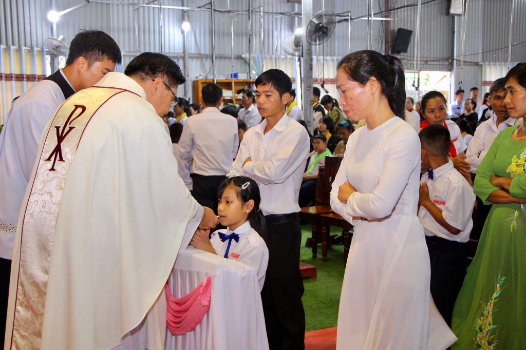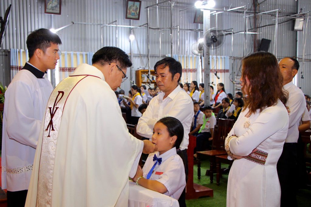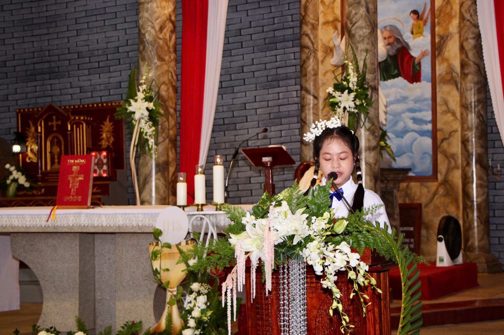 Mở đầu Thánh lễ, Cha Gioan Baotixita gởi lời chào đến các em thiếu nhi cùng quý phụ huynh hiện diện. Ngài ghi nhận nỗ lực học hỏi giáo lý của các em trong suốt thời gian qua và khích lệ các em tiếp tục sống xứng đáng với hồng ân cao cả mà các em được lãnh nhận hôm nay.