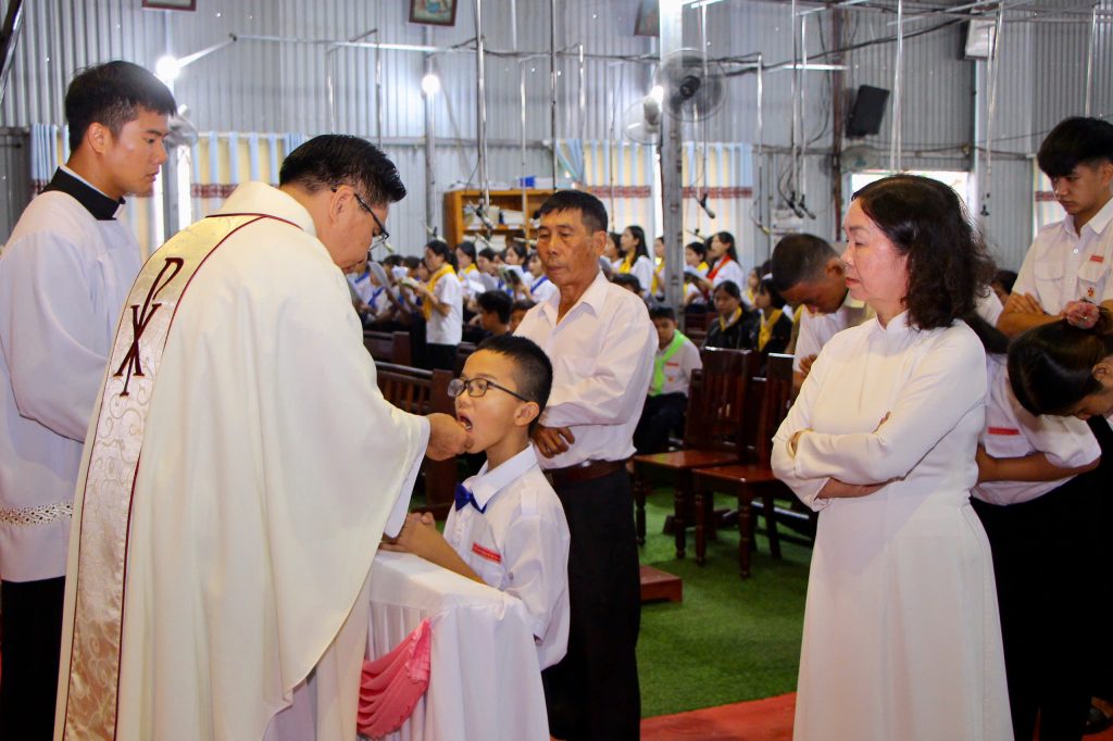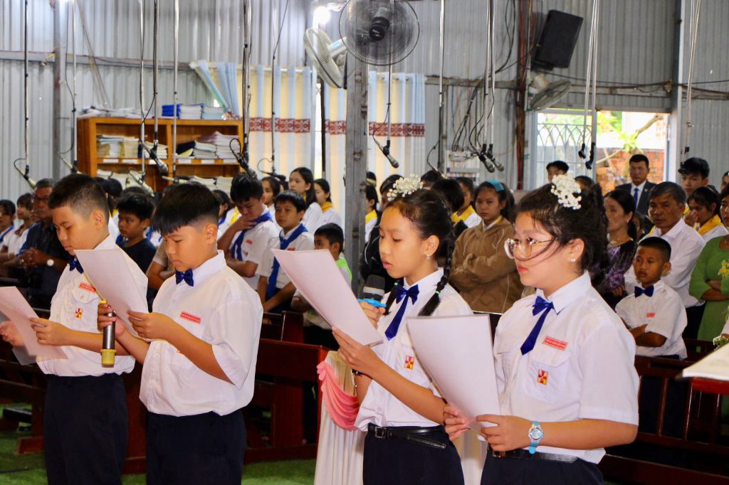 Thánh lễ khép lại trong tâm tình tạ ơn và phó thác. Cha chủ sự gửi lời chúc lành và những lời khích lệ đầy yêu thương đến các em thiếu nhi. Đại diện quý phụ huynh cũng dâng lời tri ân chân thành đến Cha giám quản, quý sơ, quý thầy, quý giáo lý viên – huynh trưởng, cùng toàn thể cộng đoàn đã đồng hành và cầu nguyện cho các em trong hành trình đức tin đầu đời.
