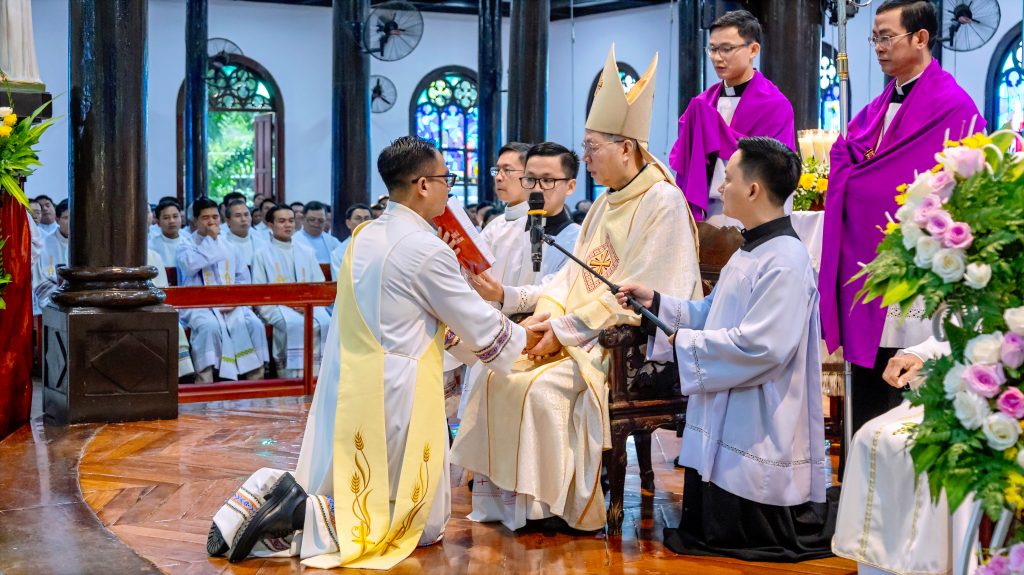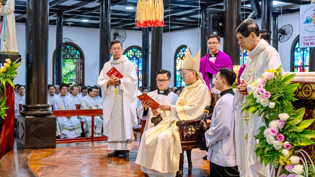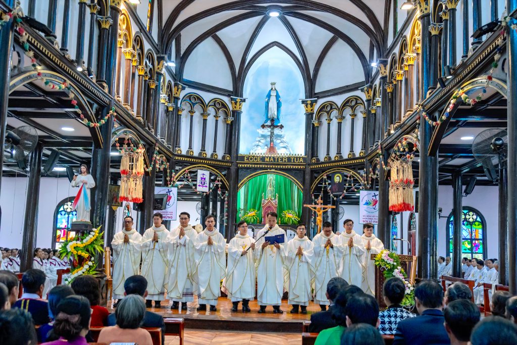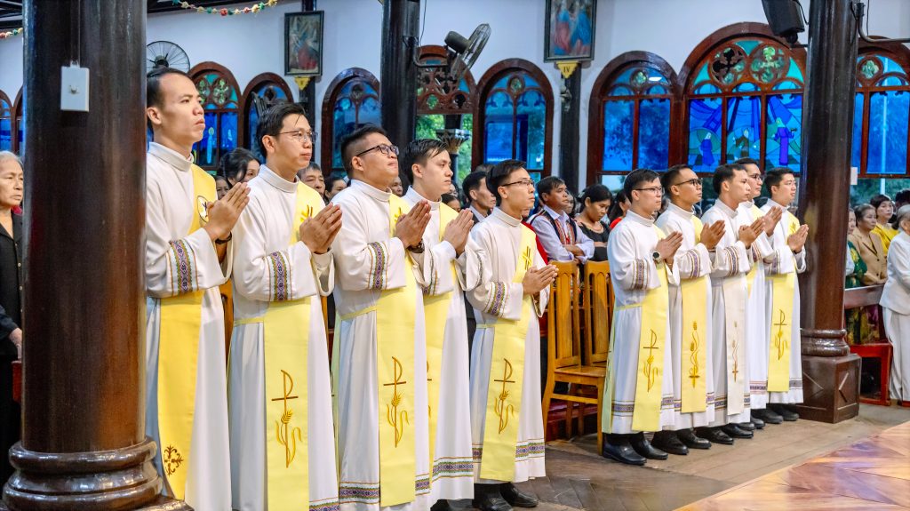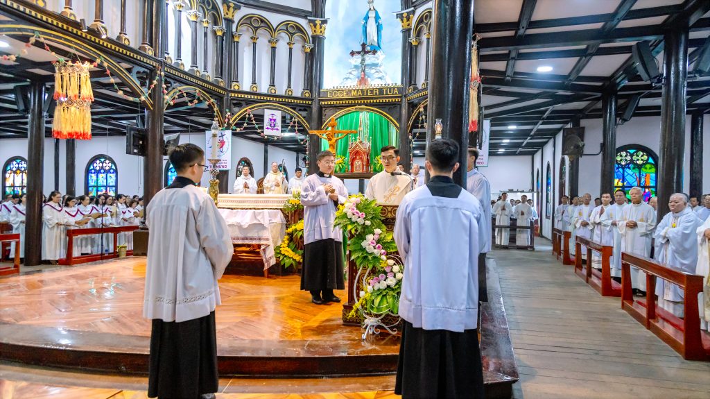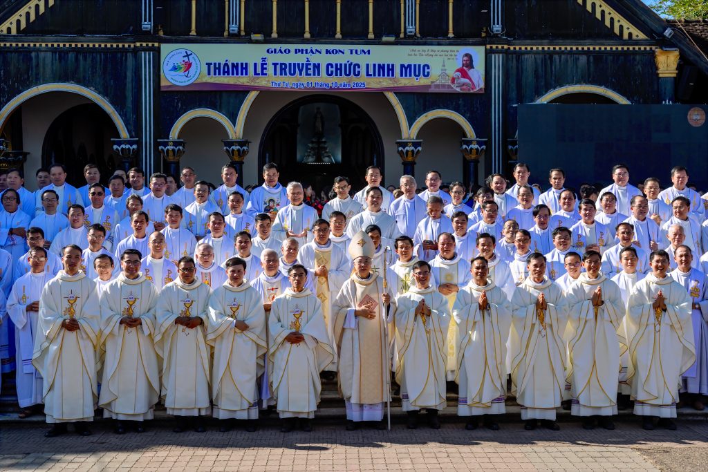 Kon Tum, ngày 01 tháng 10 năm 2025 – Trong niềm hân hoan của ngày lễ kính thánh Têrêxa Hài Đồng Giêsu, bổn mạng các xứ truyền giáo, và trong bối cảnh Năm Thánh Hy Vọng của Giáo Hội hoàn vũ cùng Năm Sứ Vụ – Cùng Nhau Loan Báo Tin Mừng của Giáo Hội Việt Nam, gia đình Giáo phận Kon Tum đã hân hoan quy tụ tại Nhà thờ Chính Tòa để cử hành Thánh lễ truyền chức linh mục cho 10 thầy Phó tế xuất thân từ Chủng viện Thừa sai Kon Tum.