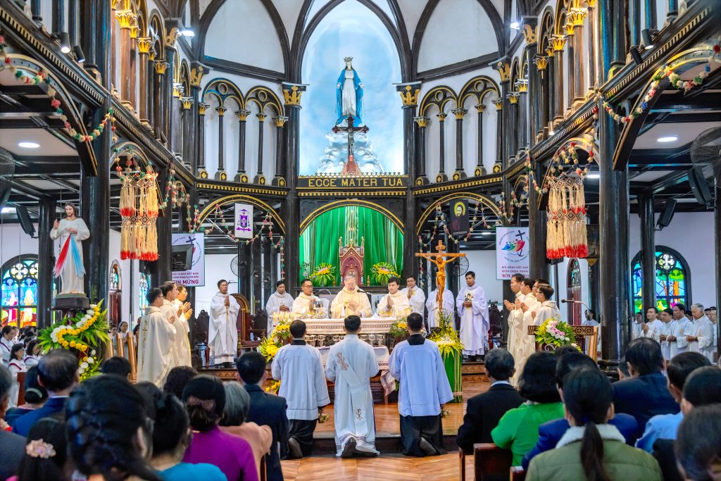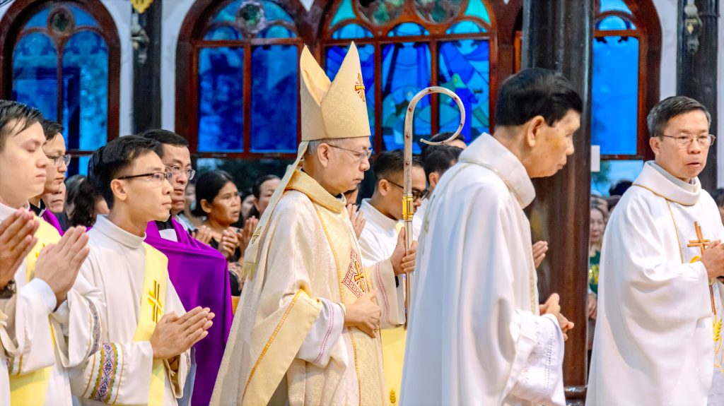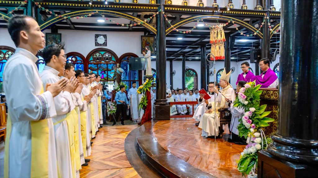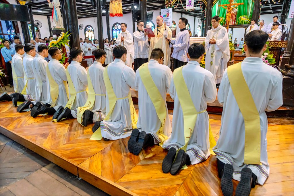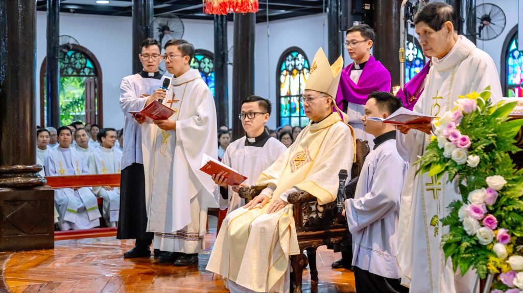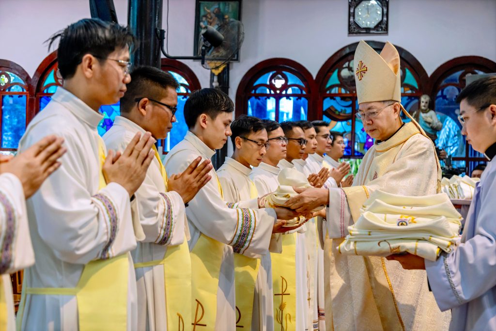 Kon Tum, ngày 01 tháng 10 năm 2025 – Trong niềm hân hoan của ngày lễ kính thánh Têrêxa Hài Đồng Giêsu, bổn mạng các xứ truyền giáo, và trong bối cảnh Năm Thánh Hy Vọng của Giáo Hội hoàn vũ cùng Năm Sứ Vụ – Cùng Nhau Loan Báo Tin Mừng của Giáo Hội Việt Nam, gia đình Giáo phận Kon Tum đã hân hoan quy tụ tại Nhà thờ Chính Tòa để cử hành Thánh lễ truyền chức linh mục cho 10 thầy Phó tế xuất thân từ Chủng viện Thừa sai Kon Tum.