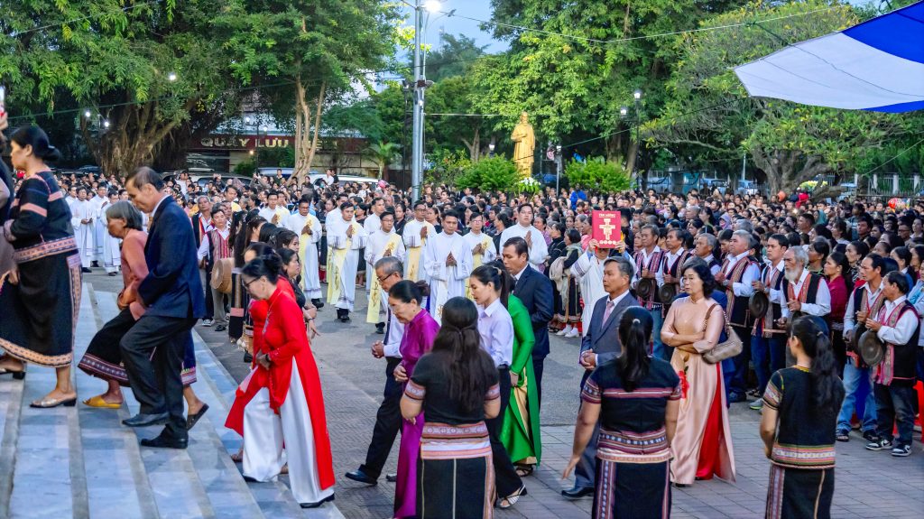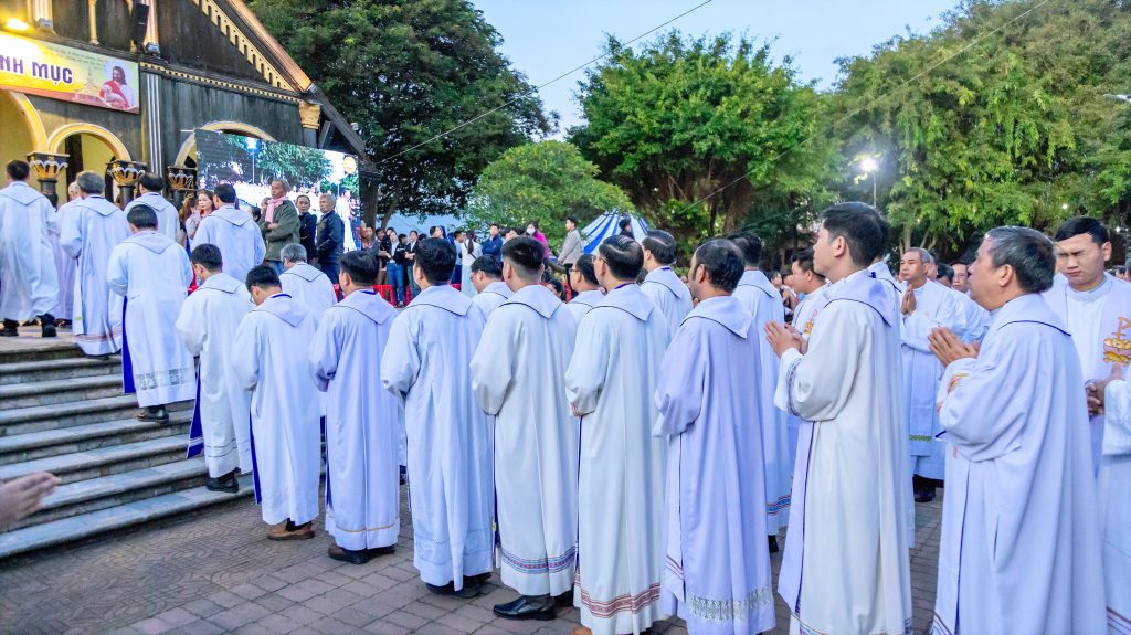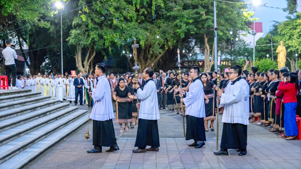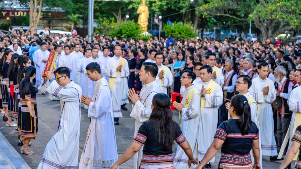 Hiệp dâng Thánh lễ còn có sự hiện diện của các tu sĩ nam nữ, chủng sinh, thân nhân – thân hữu của các tiến chức và đông đảo giáo dân Kinh – Thượng.