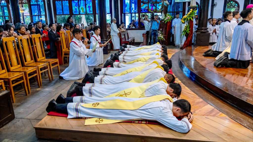 Trong phần chính yếu, Đức Giám mục đặt tay trên từng tiến chức, tiếp đến là quý Cha đồng tế – dấu chỉ của sự hiệp thông trong chức linh mục. Khi Đức Giám mục đọc lời nguyện phong chức, các thầy phó tế chính thức trở nên linh mục của Chúa và Hội Thánh trong tiếng vỗ tay hân hoan của toàn thể cộng đoàn.