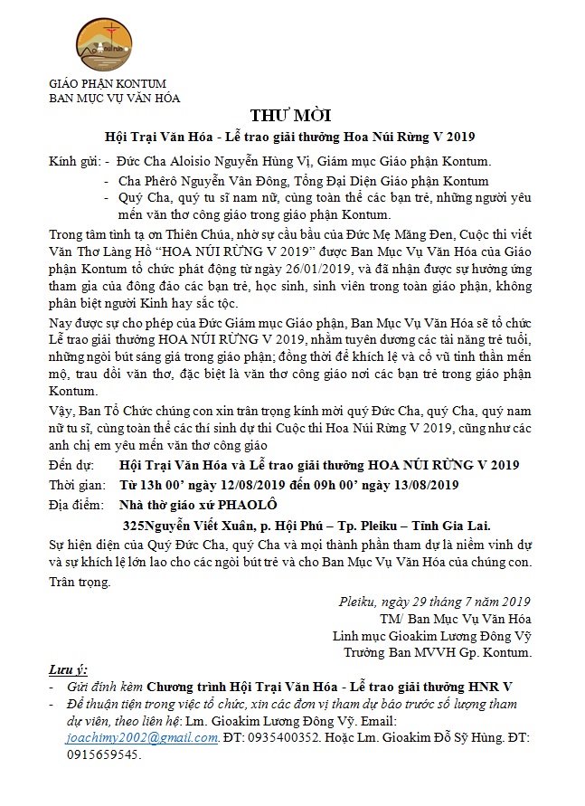 Thư Mời Và Chương Trình Hội Trại Văn Hóa – Trao Thưởng ” Hoa Núi Rừng V 2019″ 31-07-201931-07-2019 WGPKT(31/07/2019) KONTUM