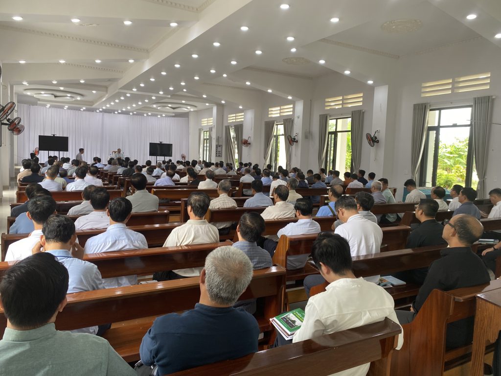 Chính trong ý hướng đó, Ban Đặc Trách Thường Huấn Giáo Phận đã tổ chức khoá thường huấn cho các Linh mục và Phó tế (cả triều và dòng) đang phục vụ tại Giáo Phận Kon Tum, trong ba ngày từ 25-27/06/2025 tại Trung Tâm Mục Vụ, với chủ đề: Tìm hiểu và áp dụng “Huấn thị cải tổ mục vụ cộng đoàn giáo xứ để phục vụ sứ vụ loan báo Tin Mừng của Hội Thánh” của Bộ Giáo Sĩ, trong bối cảnh Giáo phận Kon Tum.