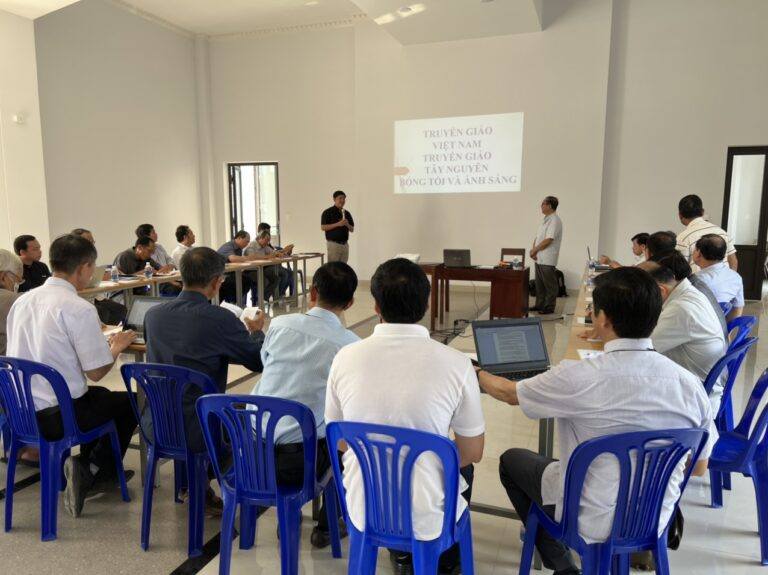 Vào buổi chiều, các thành viên của công nghị tiếp tục lắng nghe Cha Giuse Trần Sỹ Tín, Dòng Chúa Cứu thế, chia sẻ kinh nghiệm truyền giáo của Tu hội. Với ý tưởng: “làm dân với dân”, cha đã chia sẻ kinh nghiệm cuộc đời của cha trong việc mục vụ truyền giáo cho người Jrai. Bí quyết của việc hoạt động truyền giáo nơi cha chính là cuốn Thánh Kinh. Lời Chúa, đã đem cha đến với người Jrai và Lời Chúa đã làm cho sứ mệnh truyền giáo của cha nên ý nghĩa.