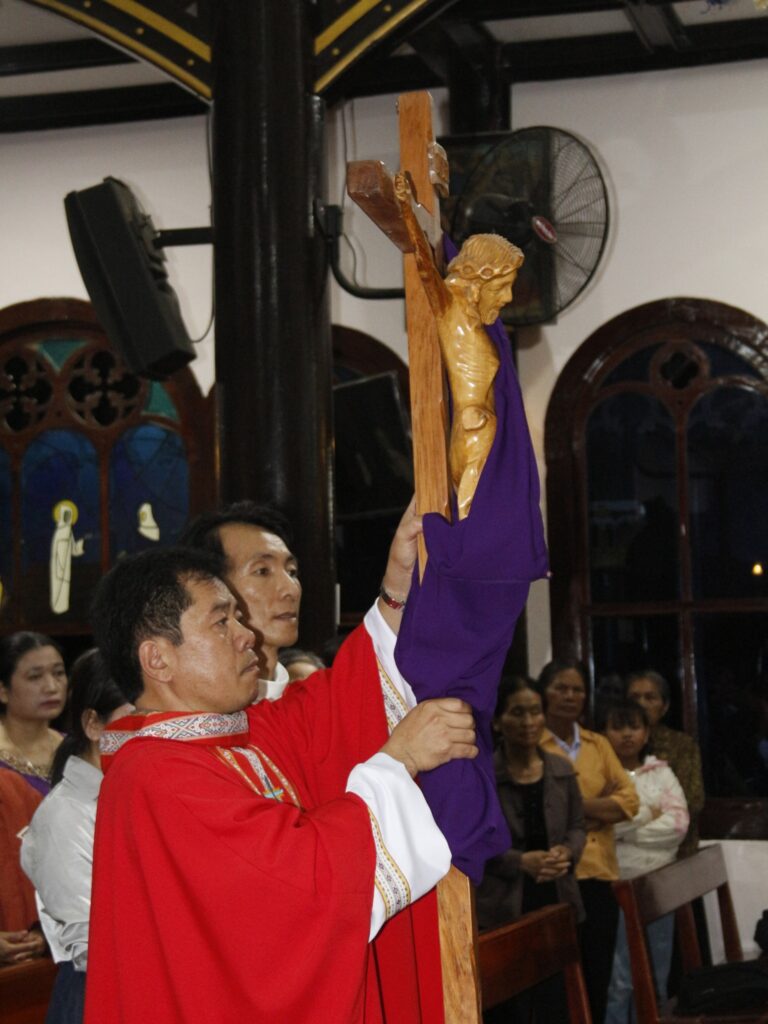 Hình ảnh cử hành Thứ Sáu Tuần Thánh tại một số giáo xứ trong giáo phận Kon Tum chiều 07/04/2023: